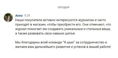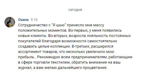 Мы стремимся предоставить самые выгодные цены для наших партнёров, чтобы Вы могли получать дополнительный доход на набирающем тренде журнале, и что самое главное — помимо продажи самого журнала клиенты будут дополнительно покупать ткань сразу у Вас здесь и сейчас! И также, что не маловажно, — Ваш магазин будет более востребованный, чем магазины конкурентов, за счет увеличивающегося комьюнити нашего журнала!